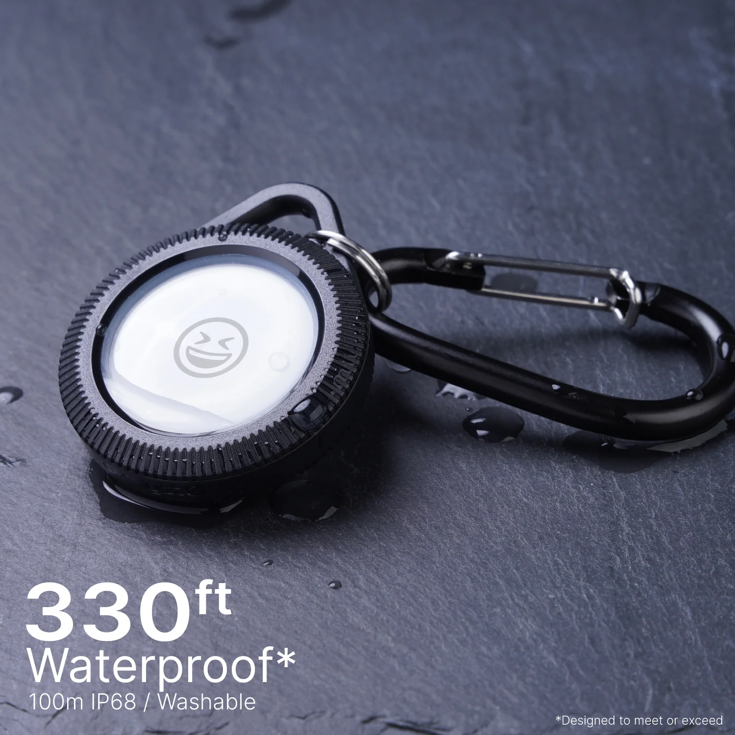 The Catalyst AirTag Total Protection Case, Hang-It is a rugged, IP68 waterproof (330ft) and MIL-STD-810G drop-proof (10ft) case for Apple AirTag. Made with impact-resistant polycarbonate and shock-absorbing silicone, it protects against water, dust, dirt, and scratches. The snug, raised-edge design ensures the AirTag stays secure, while the open design supports full sound projection and FindMy app compatibility. The included carabiner attaches to straps, backpacks, bags or keys. Washable with soap or EPA-approved disinfectants, it’s ideal for extreme conditions.